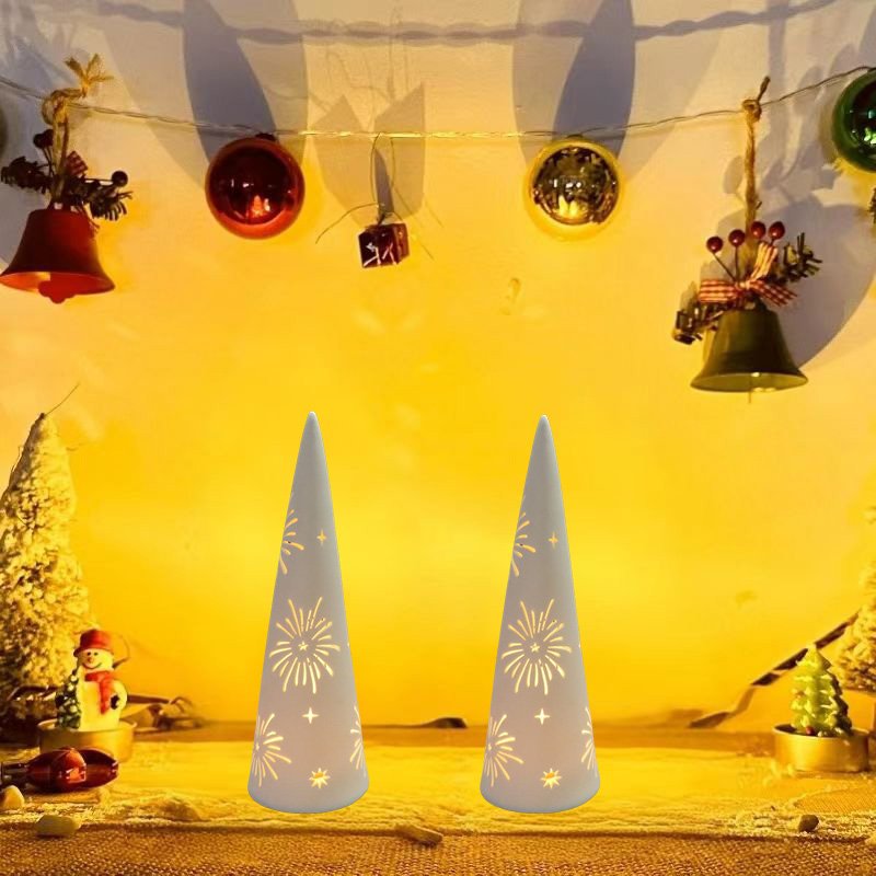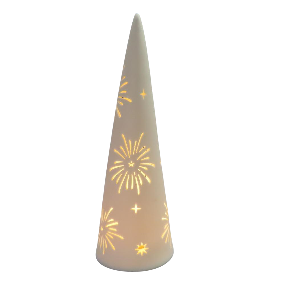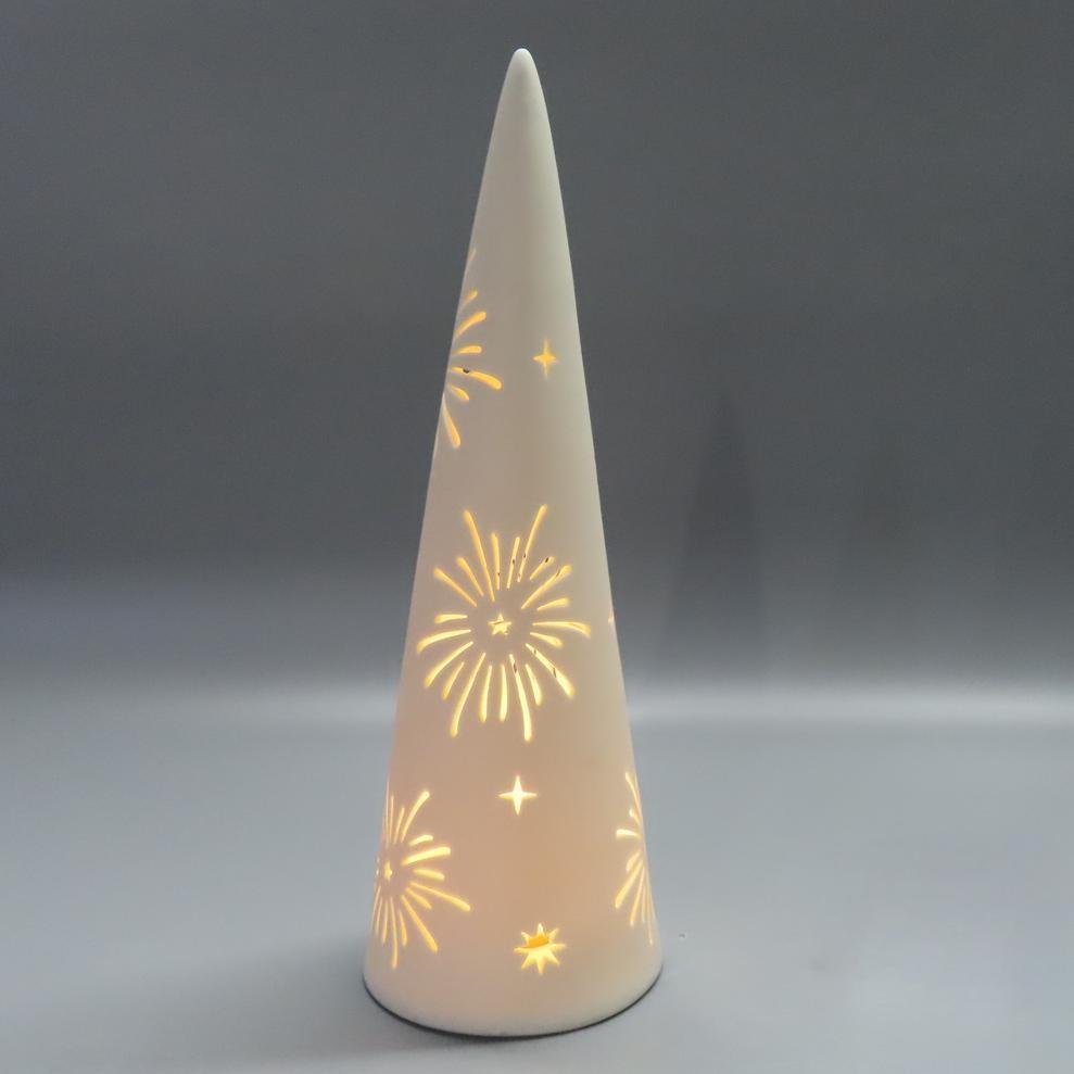 Handmade ceramic Christmas decorations; Includes warm white LED; Contains 2 LR44 batteries;